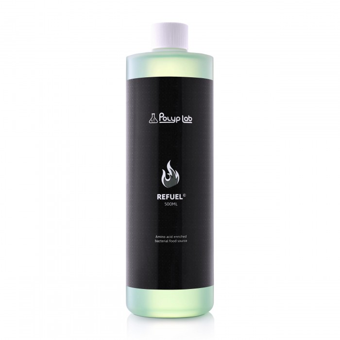 Refuel is a unique fusion of organic carbon sources enriched with amino acids. It is a safe and highly effective carbon-based bacterial food source that will steadily improve water quality. The process is very gentle, and will not have any negative effects on your existing corals.