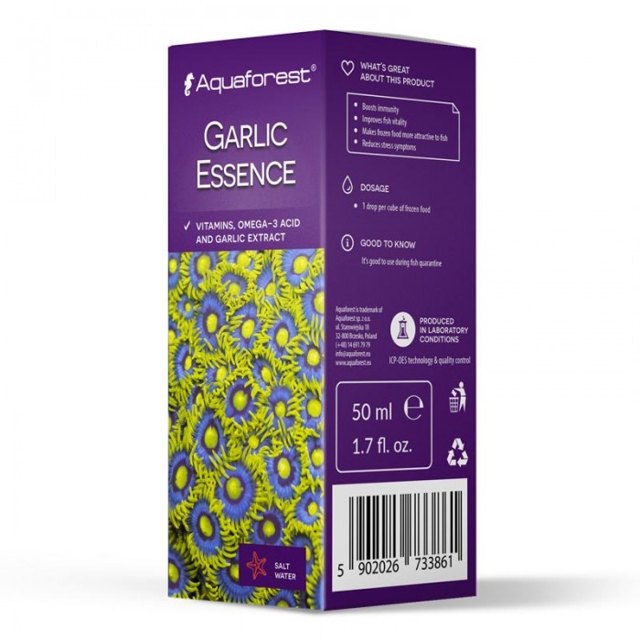 Aquaforest Garlic Essence benefits the immune system, improves vitality and has a beneficial effect on coloration
