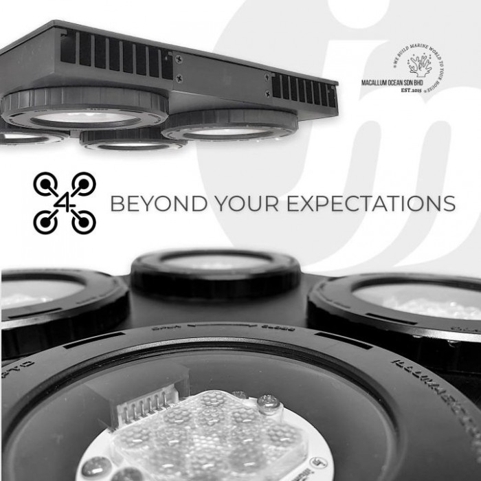 Key Features Interchangeable LEDs and lenses Narrow and Ultra Wide lenses available 24 hours of reef realism WYSIWYG camera mode Dalua ecosystem server access DBR lens, lifetime warranty LED control room global access and sharing Specifications: Dimensions - 9.6" x 9.6" x 1.49" Power Consumption - 120 @ max output Power Cable Length - 10ft What’s in the box: 1 x Illumagic X4 1 x Power cord 1 x Meanwell power supply