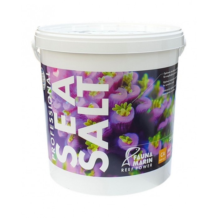 Professional Sea Salt contains all of the important macro and trace elements in the correct relative amounts that reflect as closely as possible the mix that occurs in natural seawater, and provides your corals with all the essential minerals in bioactive form. Professional Sea Salt has been specially developed for coral breeders and aquarists with the same professional standards. As a well-balanced allrounder, it gives you the best results when used in conjunction with any modern filter system. Pharmaceutically purest salts, and regular purity and composition inspections in independent laboratories, ensure that the highest standards for sensitive coral can be satisfied consistently. Required amount of salt for 35 PSU salinity: 38,5 - 39,5 g Fauna Marin Professional Sea Salt per litre of water. Despite the extreme care taken during production, individual values may change because of conditions during transport. These are average values that apply to the complete content of the product. Chemical composition/Chemische Zusammensetzung Magnesium: 1.250 - 1.340 mg/l Calcium: 410 - 440 mg/l Pottassium / Kalium: 380 - 400 mg/l Natrium: 10.300 - 10.700 mg/l Chloride: 19.100 – 19.800 mg/l Sulphate / Sulfat: 2650 – 2750 mg/l Alkalinität in dKH: 8,0–8,5° pH-Wert: 8,0–8,4 Strontium: 7,0–9,0 mg/l Packaging: 10 kg carton - water and vaportight USE AND DOSAGE Dissolve the measured quantity of Professional Sea Salt in a clean container, stirring evenly all the time. To speed up the dissolving process, add 100 ml mineral water (sparkling) for each 100 l seawater. You can use the water once it is clear and the salt content has been checked. Approx. 38,5 - 39.5 g salt is required to reach a salinity level of 34–35 PSU. To look after your sealife in the best way possible, we recommend that you change approx. 5–10% of the total volume of the aquarium every week with Professional Sea Salt.