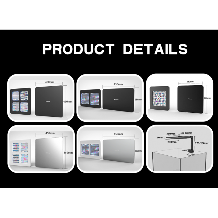 The AL200 measures 450 x 450 x 16 mm and weighs 4.5 kg. The AL150 measures 460 x280 x 16 mm and weighs 2.9 kg. Both models are available in black or silver and can be ceiling-mounted or tank-mounted. Tank-mount options are rare for large light panels, which enhances their sleek design from the outset.